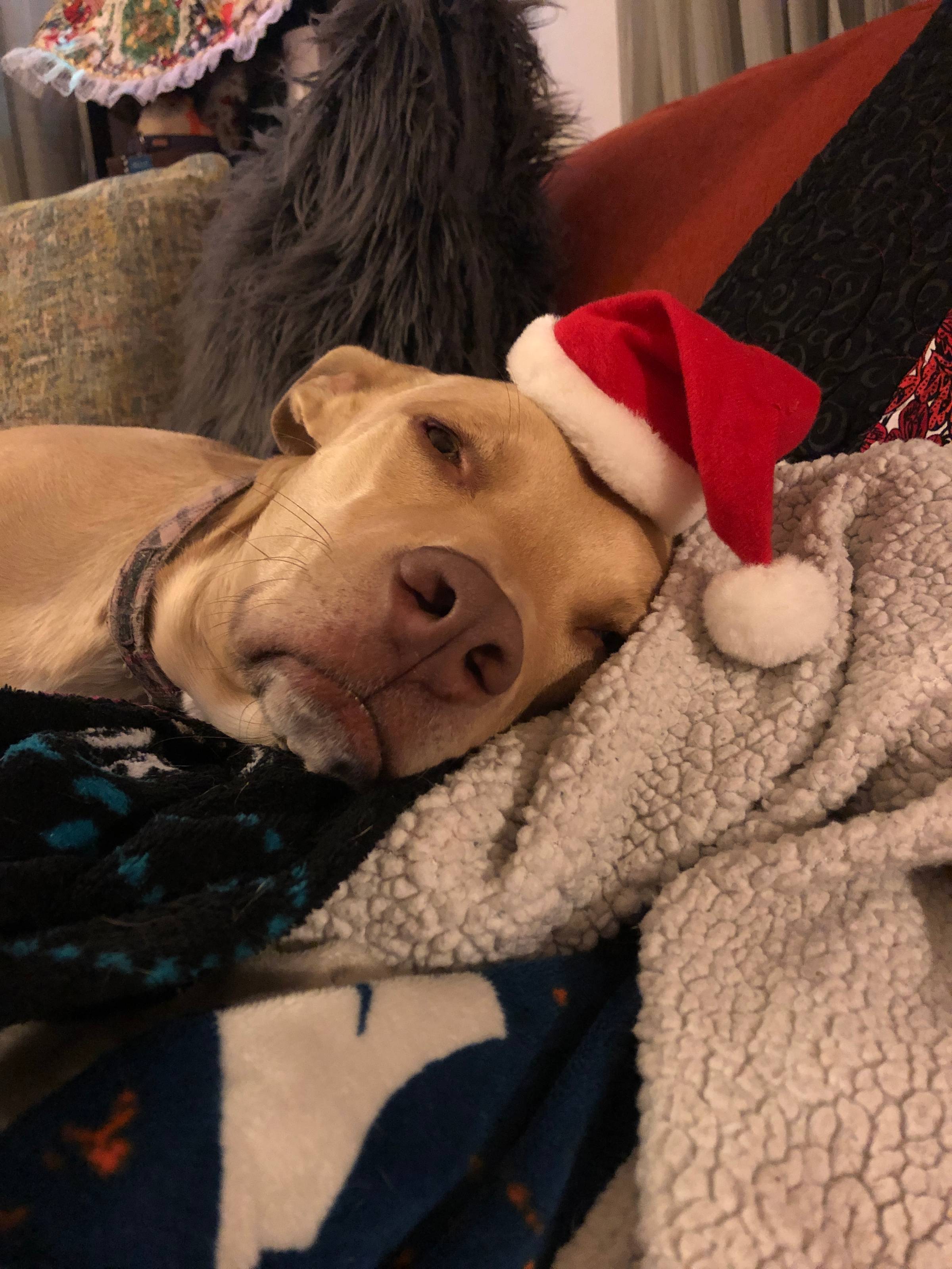 Isn't she just the grumpiest looking tiny Santa in the world???
